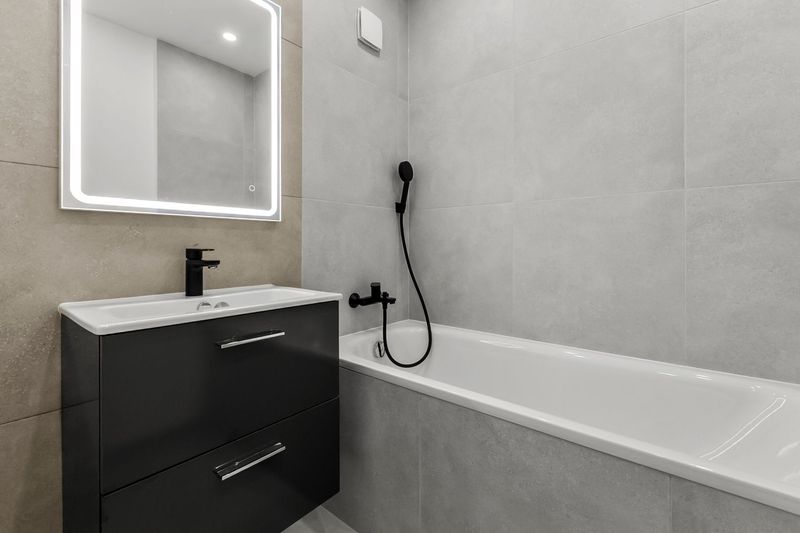 • WC závesné rimless, soft close sedátko, rektifikované veľkoplošné obklady a dlažby