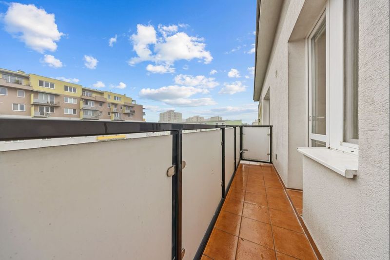 Dispozíciu bytu tvorí predsieň s priestorom na šatník, 2 menšie samostnatné izby, obývacia izba prepojená s kuchyňou, spálňa, kúpeľňa s WC. Úžitková plocha bytu je 65,48m2 + 14,91m2 loggia spolu s balkónom. K bytu prislúcha priestranná murovaná pivnica v suteréne do ktorého sa dá ísť priamo výťahom Byt je situovaný na najvyššom 6 poschodí a má JZ orientáciu. Bytový dom prešiel kompletnou rekonštrukciou. Parkovanie je v okolí bytového domu bezproblémové.