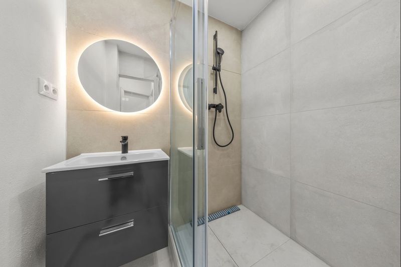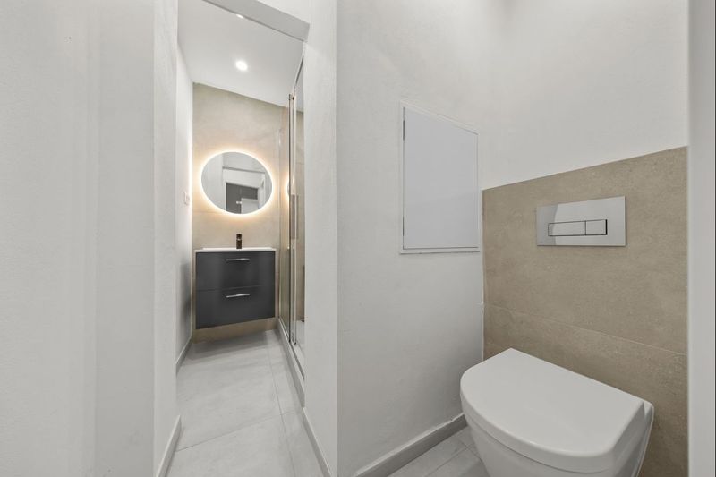 • WC závesné rimless, soft close sedátko, rektifikované veľkoplošné obklady a dlažby
