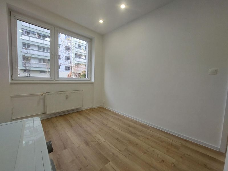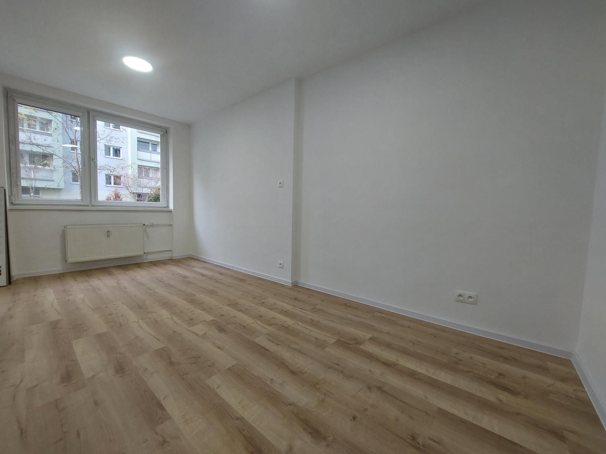 Byt má vstupnú chodbu, obývaciu miestnosť, kuchyňu a kúpeľnu s WC. Prešiel kompletnou vkusnou rekonštrukciou zahřňajúcou: vinilové podlahy, nové interiérové a vchodové dvere, komplet elektroinštalácia a rozvody vody, nová kúpeľňa so sprchovým kútom, umývadlo so skrinkou, zrkadlo s osvetlením, závesné WC. V byte sú plastové okná so sieťkami a interiérovými roletami.