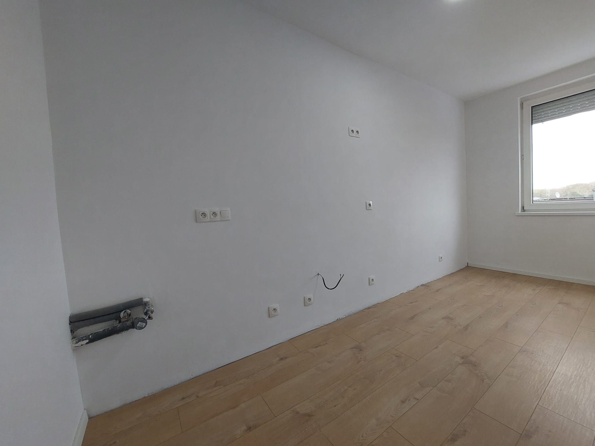 V byte sú plastové okná Rehau s exteriérovými roletami, urobená je komplet predpríprava na kuchynskú linku.