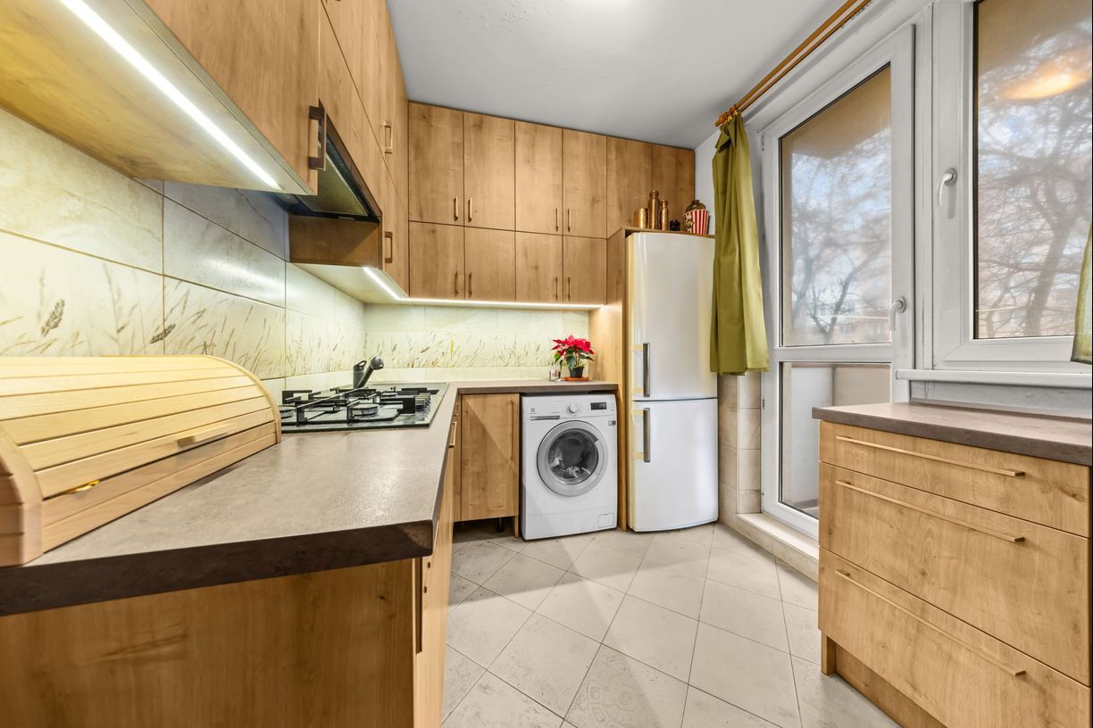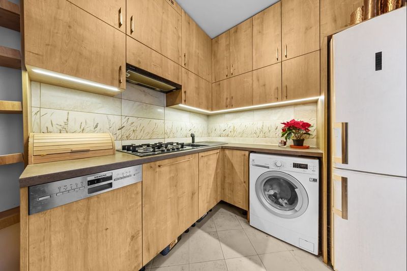 - Zariadený – kvalitná, 6 ročná, rohová kuchynská linka na mieru so spotrebičmi a skrinkami až po strop,